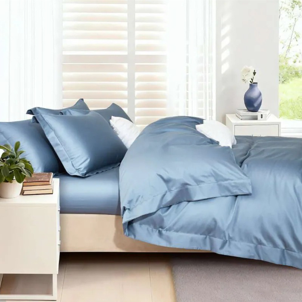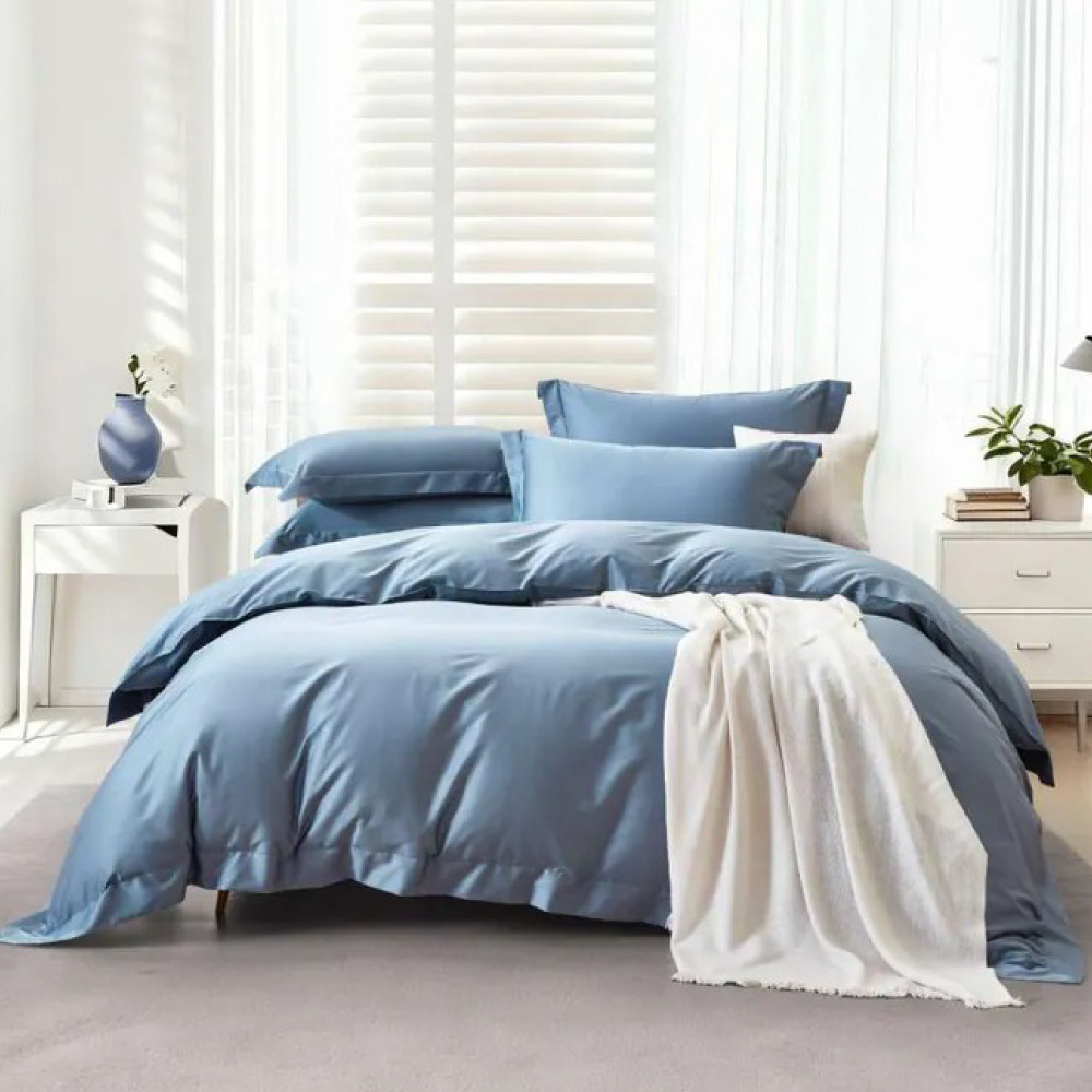 尊爵白金款|埃及長絨棉 兩用被床包組【琴調藍】長纖系列
