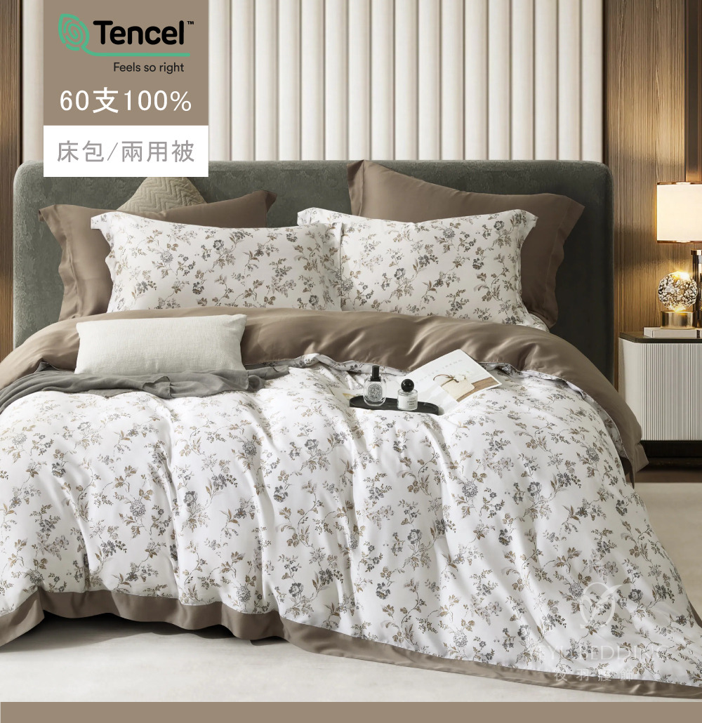 60支天絲™ 100%萊賽爾|兩用被床包組【南法小徑】有荷葉邊