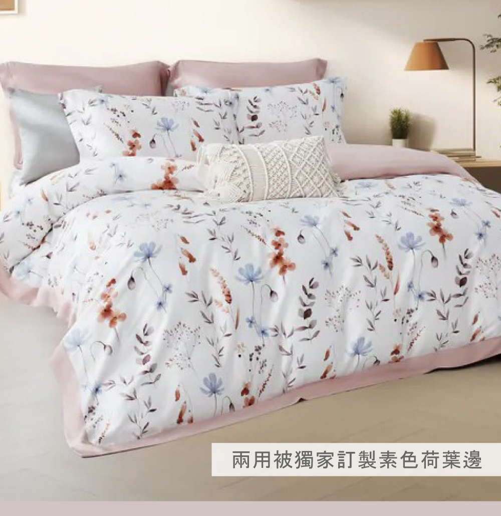 60支天絲™ 100%萊賽爾|兩用被床包組【花晨讀敘】有荷葉邊