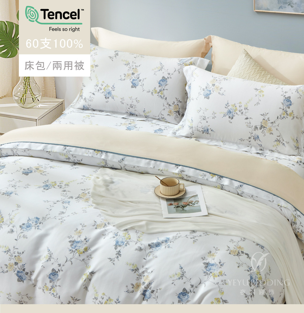 60支天絲™ 100%萊賽爾|兩用被床包組【香頌花語】