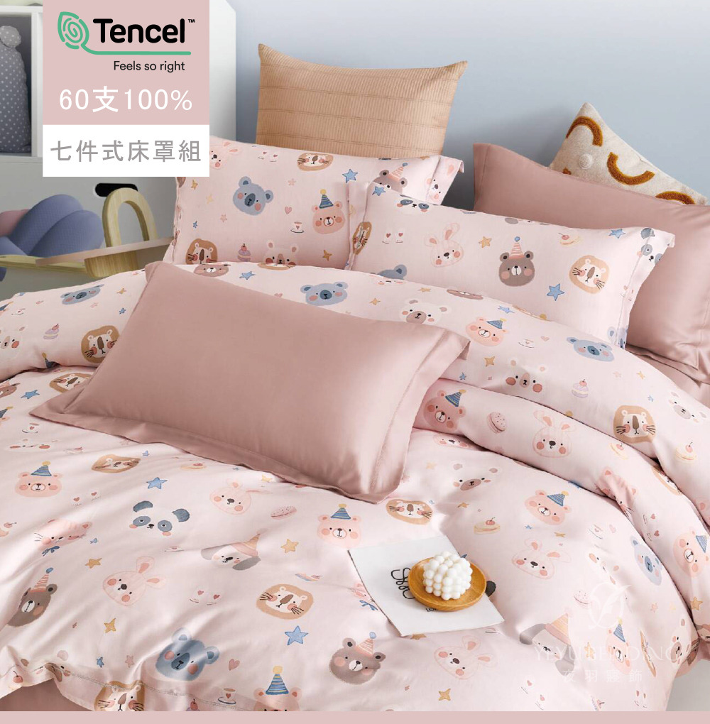 60支天絲™ 100%萊賽爾|七件式床罩組【星嶼萌居-粉】