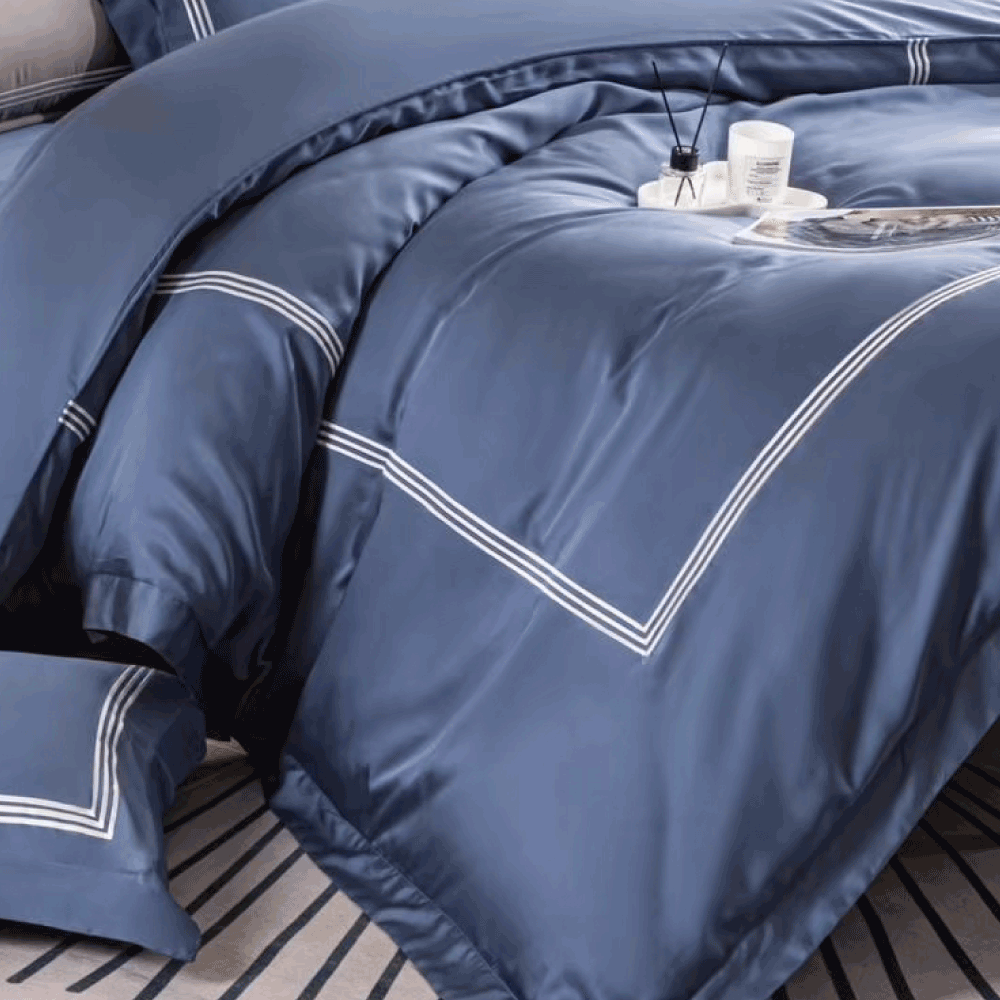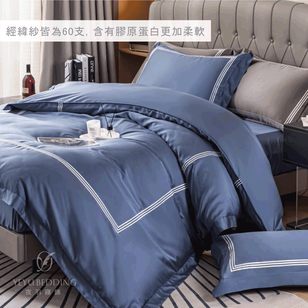 60支膠原蛋白天絲™ 100%萊賽爾|兩用被床包組【藏青藍】刺繡